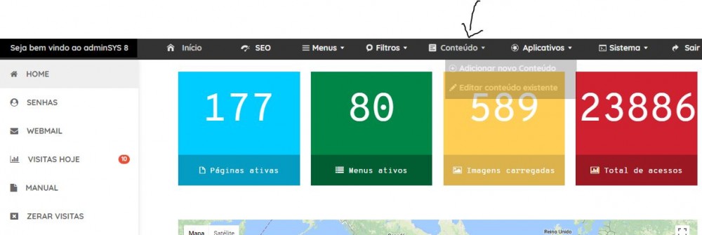 Ou na nova versão 8.0 em "Conteudo", depois "Adiciona Conteúdo".